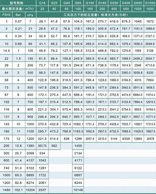 G型流量計的選型表