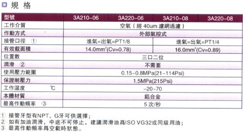臺灣AIRTAC 3A200換向閥的主要特性: