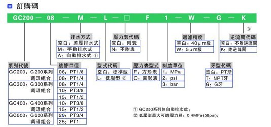 AIRTAC三聯(lián)件氣源處理元件GC系列三聯(lián)件訂購碼: