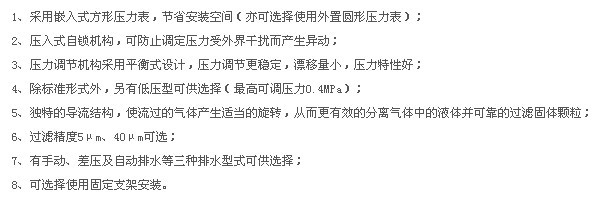 1. GFR系列調(diào)壓過濾器的產(chǎn)品特性: