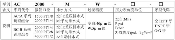 如何選購AC和BC系列三聯(lián)件產(chǎn)品,請參照以下訂購代碼: