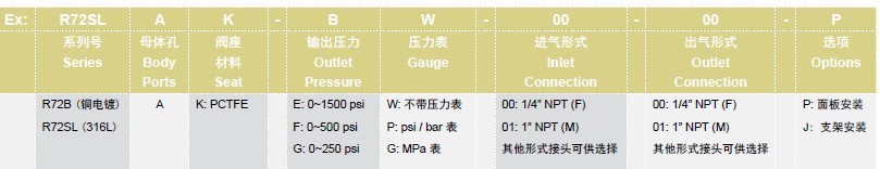 R72背壓閥的結(jié)構(gòu)特點(diǎn) Features u 活塞式結(jié)構(gòu) u 母體接口螺紋:1/4” NPT(F) u 最大調(diào)節(jié)壓力:1500 psi u 工作壓力:2300 psi u 安全壓力:1.5倍的工作壓力 u 適用溫度:-40°C至74°C(-40°F至165°F) u 內(nèi)泄漏率: 2×10-8 atm.cc/sec.He u CV 值: 0.15 u 重量:1.2 kg (2.65 lbs)