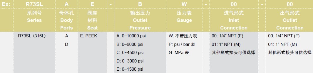 R73泄壓閥的材質(zhì) Materials u 母體:316L u 閥座:PEEK u 活塞:316L