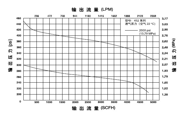 GENTEC 452大中型氣體減壓器的流量圖: