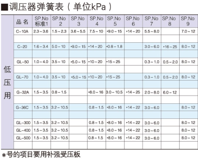 三:ITOKOKI單段調(diào)壓閥的彈簧表: