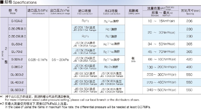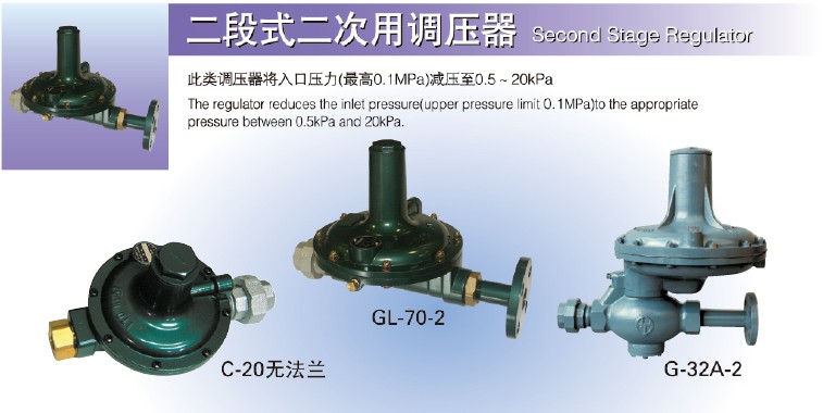 5. 主要型號(hào)有: C-10A-2調(diào)壓器;C-20A-2減壓閥;GL-50-2中低壓調(diào)壓器;GL-70-2液化氣減壓閥;G-32A-2天然氣調(diào)壓閥;G-36C-2燃?xì)鉁p壓閥;GL-300-2氣體調(diào)壓器;GL-400-2穩(wěn)壓閥;GL-500-2燃?xì)庹{(diào)壓器;