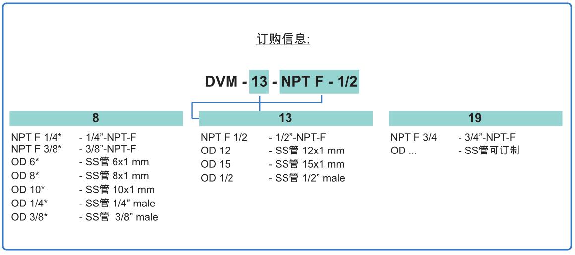 膜片: DN8: 不銹鋼 1.4571; DN13/19: 不銹鋼 1.4310